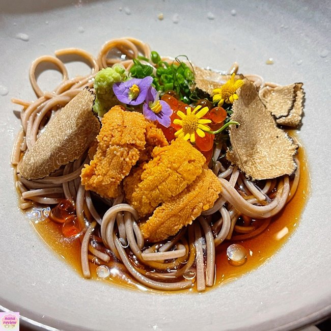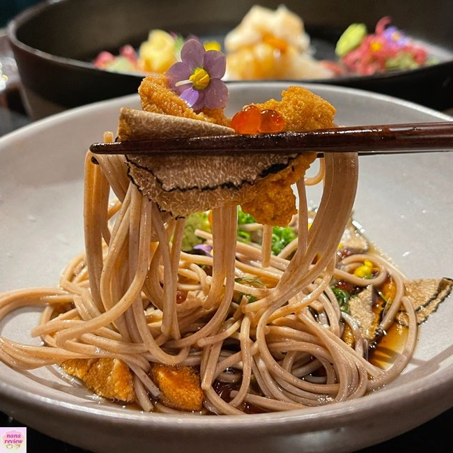 โซบะเย็นกับเห็ดทรัฟเฟิล ดีงามมาก น้ำโซบะกลมกล่อม ไม่เค็มจัดเหมือนที่เคยเจอๆมานะ ได้ความอร่อยแบบสัมผัสธรรมชาติกับไข่หอยเม่นและไข่ปลาแซลมอนที่ใส่มาพร้อมกลิ่นทรัฟเฟิลจ้า