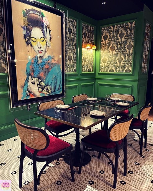 การตกแต่ง คือ เป็นร้านอาหารญี่ปุ่นสไตล์โมเดิร์น สวยงามมาก สไตล์บิสโทรแบบฝรั่งเศส และใช้วัสดุและสิ่งทอแบบดั้งเดิมของญี่ปุ่นมาประดับร้าน มีลูกเล่นการใช้สีและแสงในร้านจัดจ้าน Modern สุดๆ