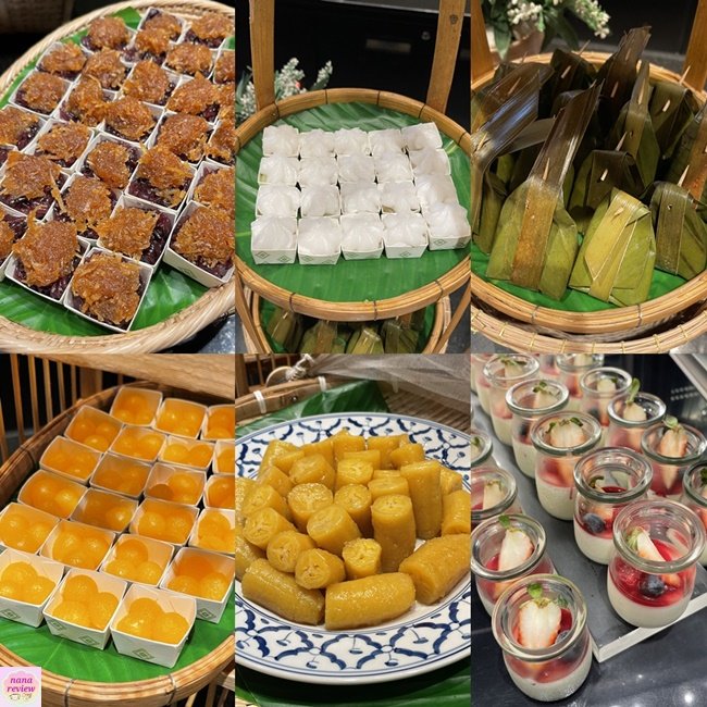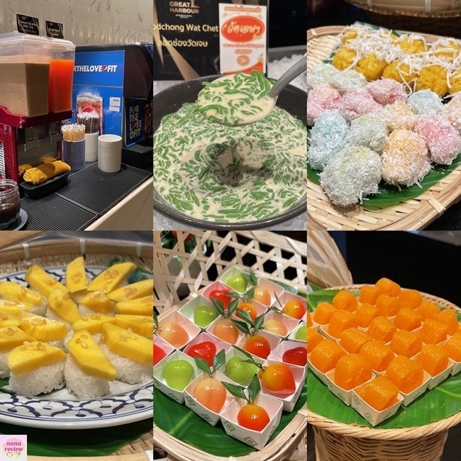 ของหวาน : ขนมไทย , คร็อกเฟิล , ไอศกรีม Movenpick 4 รสชาติ , ผลไม้สด , น้ำแข็งไส , เค้กต่างๆ