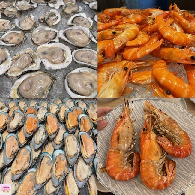 ซีฟู้ด : กุ้ง , กุ้งแม่น้ำ , หอยแมลงภู่นิวซีแลนด์, หอยนางรม