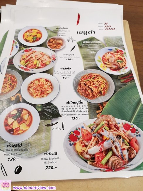 ตำไหลบัวกุ้งสด(ปลาร้า), ตำไทยข้าวโพด, ตำไทยปูนิ่ม, ตำถาดสะบัด(ปลาร้า)