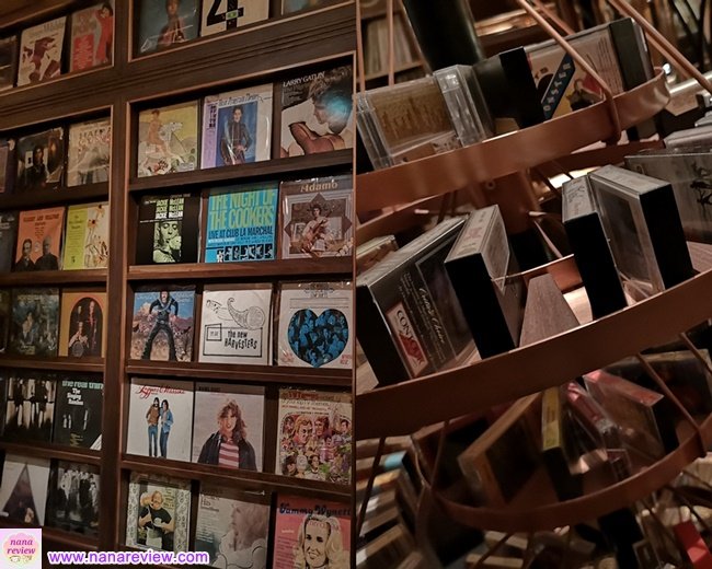 เห็นบรรยากาศแล้ว เชื่อว่าทุกคนจะชอบ ออกแนวย้อนยุคนิดๆ หน้าห้องอาหารตกแต่งด้วยแผ่นเสียงและเทปคัสเซ็ทเก่าๆ