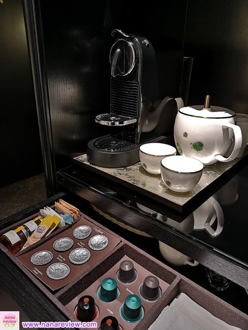 สิ่งอำนวยความสะดวกในห้องครบมาก มีเครื่องชงกาแฟ ชงชา กาแฟ ที่วางไว้ได้ฟรีเลย