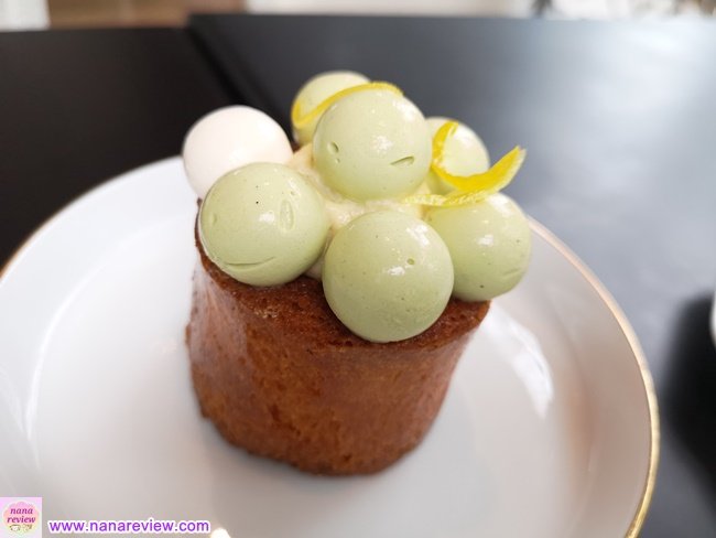 Signature Dessert : RUM BABA ชิ้นนี้เป็นของหวาน Signature เป็นสปอนจ์เค้กก้อนใหญ่ ด้านบนมีครีม ตัวเนื้อเค้กฉ่ำไปด้วยไซรับรสเปรี้ยวสับปะรด ดีงามค่ะ