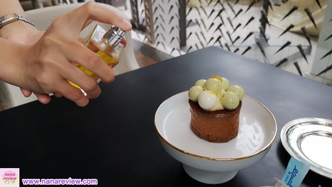 สามารถเพิ่มรสชาติได้ด้วยโดยพนักงานจะนำสเปรย์กลิ่น 3 กลิ่นมาให้เลือกฉีดใส่ไปที่ขนมค่ะ มีกลิ่น ซินนามอน, สับปะรด และ มะม่วง ค่ะ