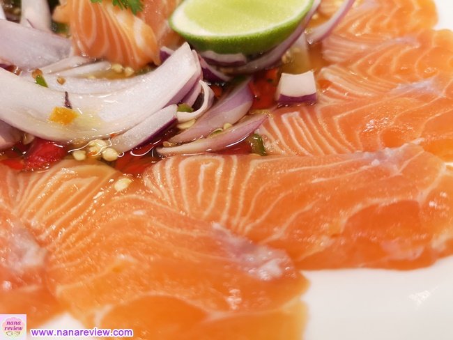 ยำแซลมอนแซ่บ ไม่ใส่ปลาร้า จานนี้ก็อร่อยมาก แซลมอนสด น้ำยำอร่อย เผ็ดปานกลาง