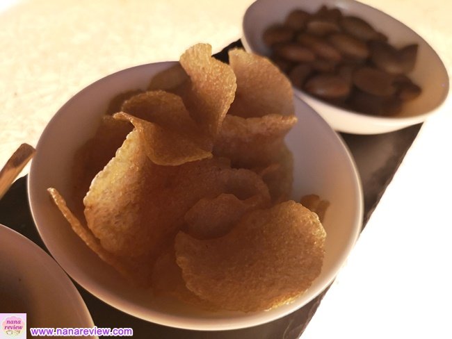 อะมุชบุช (Amuse Bouche) เป็นขนมปังด้านบนโปะด้วยชีส คำเล็กๆคนละคำค่ะ