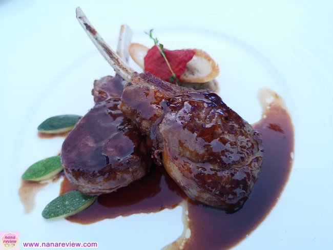 แลมป์ช็อป (Lamb chop, eggplant caviar millefeuille and turned zucchini) ประทับใจมากที่สุด ปกติไม่ค่อยกินแกะ แต่วันนี้ลองสั่งแล้วชอบไปเลย แกะนุ่ม ความสุกกำลังดี ซอสอร่อย ชนะเลิศจริงๆค่ะจานนี้