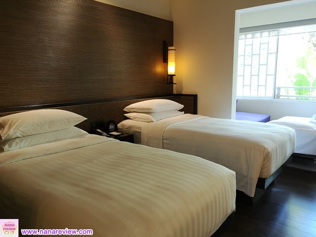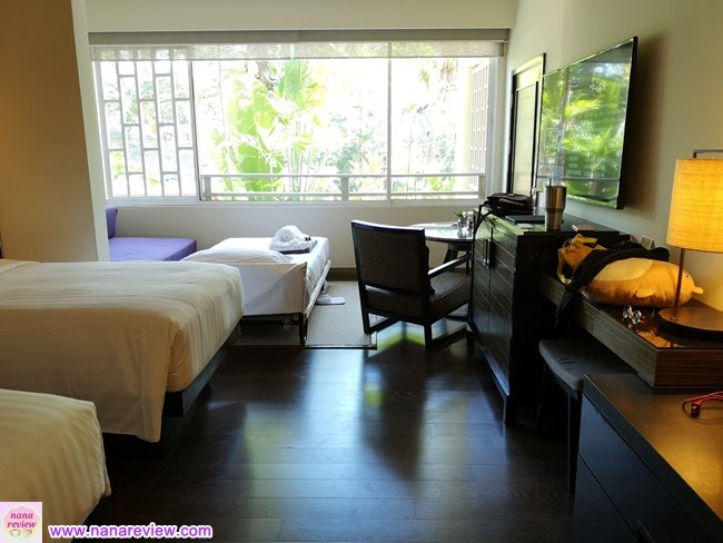 เราเลือกพักห้อง Deluxe Club Room ขนาดห้องกำลังพอดี พร้อมเตียงเสริม พักได้ 3 คน สบายๆ ค่ะ