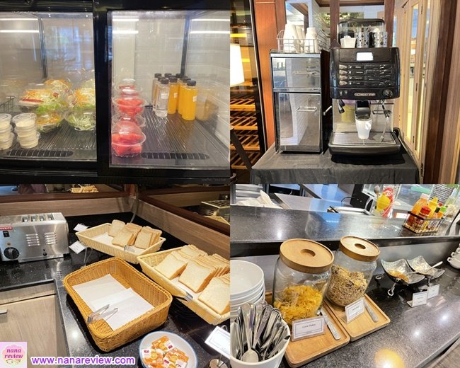 มื้อเช้าเป็นบุฟเฟ่ต์แบบตักเองง่ายๆค่ะ มีน้ำผลไม้ สลัด ไข่ให้สั่งได้ ข้าว กับข้าวประมาณ 3 อย่าง ซุป ก๋วยเตี๋ยวผัด ขนมปัง และ ชา/กาแฟ กดเองได้เลยค่ะ