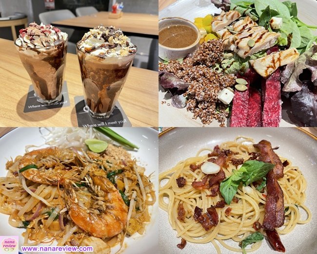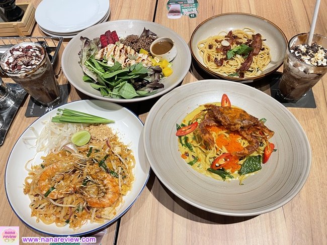 สลัดไก่ย่างคีนัว , พาสต้าชะพลูปูนิ่ม , ผัดไทยกุ้ง และ สปาเก็ตตี้สไปซี่เบคอน
