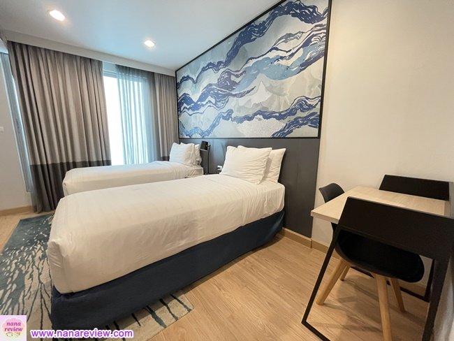 ห้องนอนที่ 2 กว้างสบายไม่แพ้กัน เป็น 2 เตียง มีโต๊ะอ่านหนังสือ ตู้เสื้อผ้า และสามารถเปิดเข้าไปที่ห้องน้ำที่ 2 อีกห้องได้เลย มีอ่างอาบน้ำขนาดใหญ่ ของใช้ในห้องน้ำครบ ซึ่งห้องน้ำห้องนี้สามารถเปิดเข้ามาจากทางห้องรับแขกได้ด้วยค่ะ