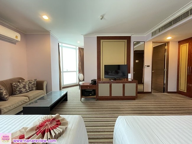 โดยรวมแม้จะการตกแต่งไม่ modern จ๋า แต่จัดว่าขนาดห้องกว้างดี อยู่สบายมากๆ แล้วทำเลดีมากค่ะ คือ เดินออกมาจากโรงแรมก็เชื่อมต่อห้าง พาลาเดี้ยม ได้เลย shopping หาอะไรกินก็ง่าย