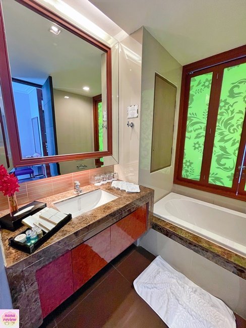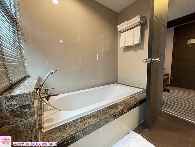 ห้องน้ำก็กว้างขวาง มีอ่างอาบน้ำขนาดใหญ่ มีห้องอาบน้ำเป็นสัดส่วน