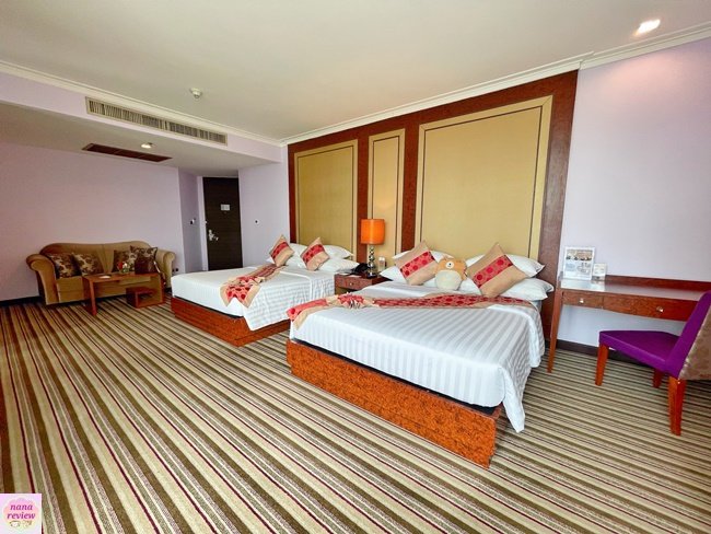 ห้องที่ได้วันนี้เป็นเตียงใหญ่ 2 เตียง มา 2-3 คนก็สบาย มีลูกเล็กมาด้วยก็สบายค่ะ