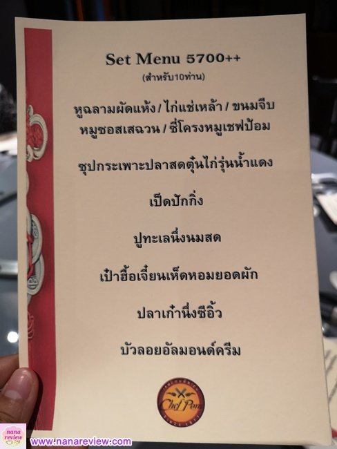 เมนูแนะนำที่ได้ชิมวันนี้ เป็น Set Menu สำหรับ 10 ท่าน ราคา 5,700 บาท++ หรือ 6,526 บาทเน็ต ไม่รวมเครื่องดื่ม (สั่งจองล่วงหน้าเท่านั้น)