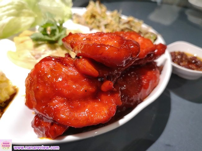 เสิร์ฟมากับเส้นใหญ่ทอด กินด้วยกันแบบนี้ค่ะ