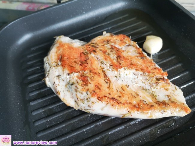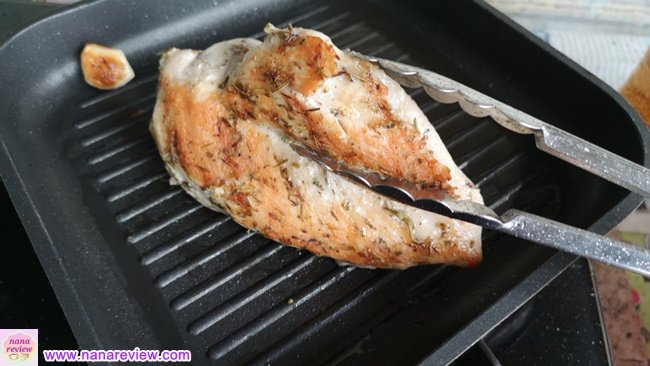 *ชิ้นอกไก่หนามาก แนะนำให้หั่นเป็น 2 ชิ้นแล้วย่างค่ะ