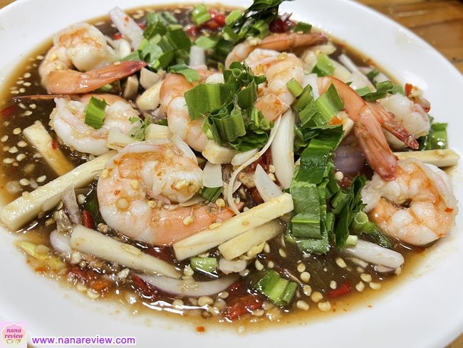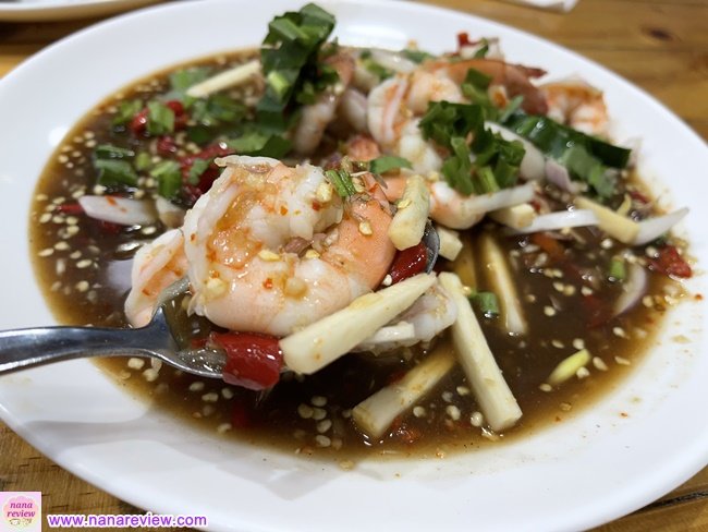 ยำกุ้งสุกนัวปลาร้า แซ่บนัวถูกใจมาก ไม่มีที่ติ
