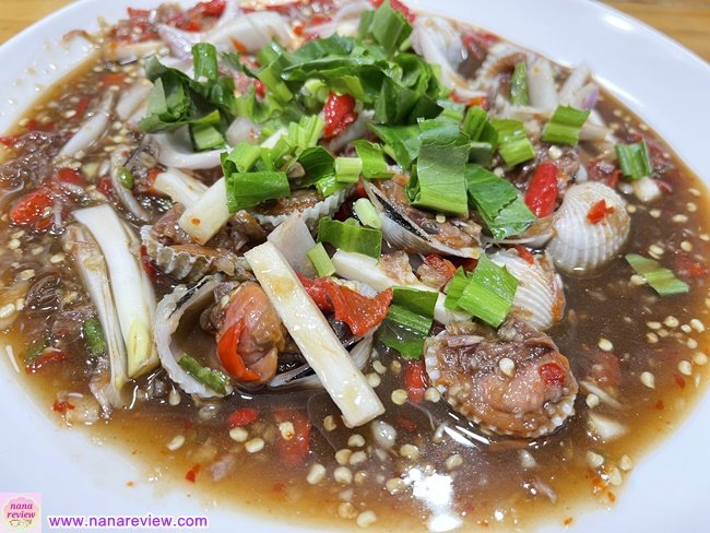 ยำหอยแครงนัวปลาร้า แซ่บนัวถูกใจ หอยลวกมาสุก กลิ่นไม่แรง ชอบ