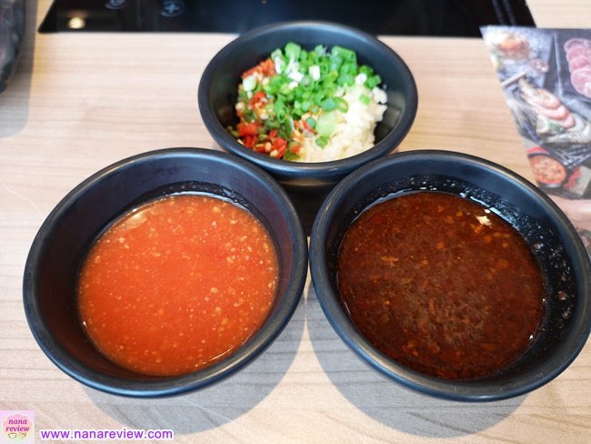 *น้ำซุปมีให้เลือก 6 น้ำซุป , น้ำจิ้มมี 2 แบบ คือ แบบสุกี้ และ แบบไต้หวัน รสชาติคล้ายๆพอนสึ แต่ผสมพริกมาแล้ว ปรุงเพิ่มได้ด้วยต้นหอม พริก และ กระเทียม ค่ะ