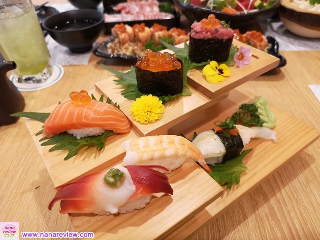 เป็นชุดข้าวปั้น 6 คำ หน้าพรีเมี่ยม ได้แก่ ข้าวปั้นหน้าไข่ปลาแซลมอน , ข้าวปั้นหน้าหอยปีกนก, ข้าวปั้นหน้า Salmon, ข้าวปั้นหน้าเอ็นกาวะ , ข้าวปั้นหน้ากุ้ง และ ข้าวปั้นหน้าโอโทโร่สับ