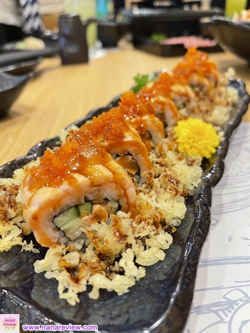 เป็นโรลแซลมอนที่เบิร์นผิวปลามา อร่อยมาก ซอสเข้มข้นค่ะ คำใหญ่เต็มคำดีด้วยอ่ะ รักเลย