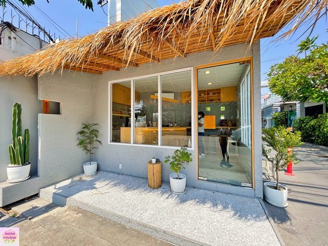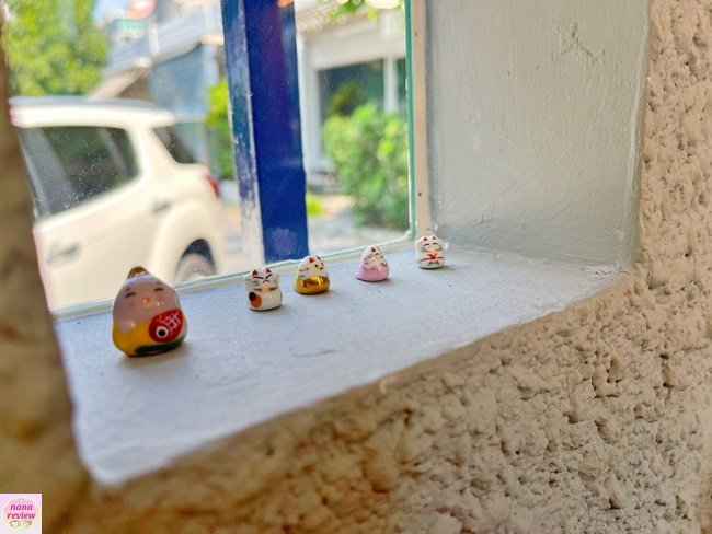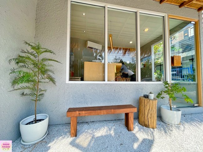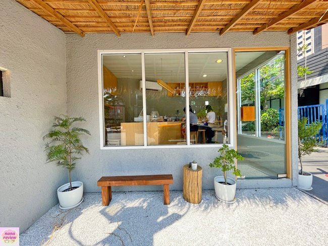 คาเฟ่เล็กๆ น่ารัก สไตล์ญี่ปุ่น ย่านเหม่งจ๋าย / ประชาอุทิศ หน้าร้านตกแต่งสวนหินเล็กๆ สีขาว พร้อมป้าย และที่นั่งไม้ คือ ได้ฟิลญี่ปุ่นมินิมอลกันไป
