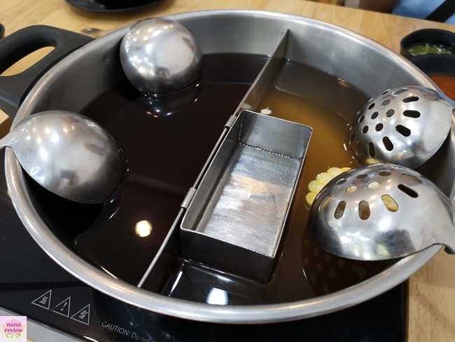น้ำซุปดีงาม มีแบบใส และน้ำดำ อย่างละครึ่งหม้อ  พร้อมช่องใส่ชีส  คือ คนรักชีสชอบมากเลยจ้า