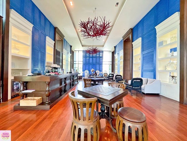 เข้ามาที่ Lobby ก็จะพบกับการตกแต่งสไตล์โคโลเนี่ยลสวยงาม เพดานสูงโปร่ง ธีมสีน้ำเงิน , ฟ้า และ ขาว ได้กลิ่นอายทะเลตั้งแต่เข้ามาเลยค่ะ