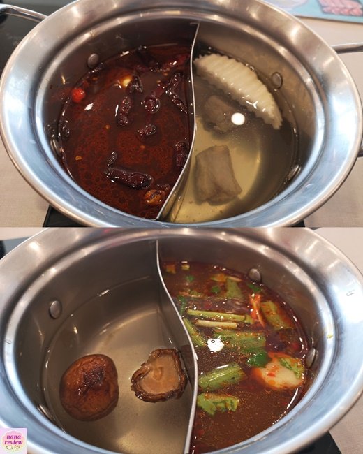 น้ำซุปมี 4 รสชาติ : ซุปหมาล่า , ซุปต้มยำ , ซุปใสไต้หวัน และ ซุปเห็ดหอม