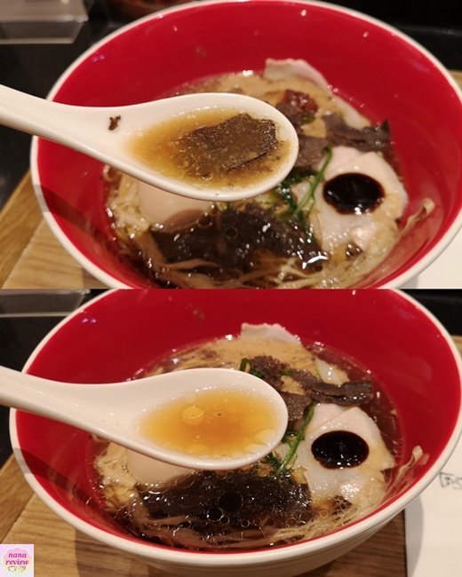 ส่วนตัวรู้สึกว่าช่วงแรกหอมทรัฟเฟิลชัดมาก รสชาติซุปเข้มข้น อร่อย แต่ถ้ากินไปสักพักและเมื่อทุกอย่างผสมรวมกัน กลิ่นทรัฟเฟิลจะจางลง (ก็คงเป็นเพราะกินไปครึ่งนึงด้วยแล้วมั้ง )