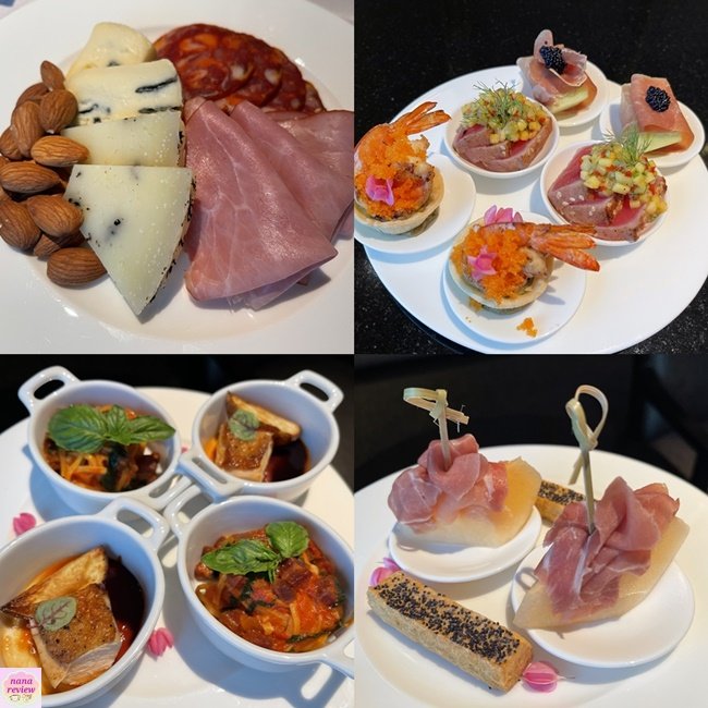 ตรงเวลาเช่นเคย อาหารก็มี ชีส , แฮม, สปาเก็ตตี้ , สเต็กไก่ย่าง , คานาเป้ ต่างๆ เสิร์ฟมาอย่างละ 2 คำ