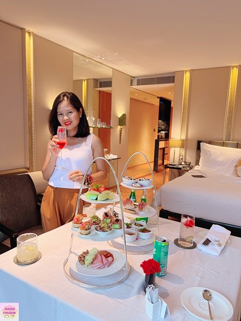 แต่เมื่อเกิดการประกาศเคร่งครัดในมาตรการ Covid-19 ยกระดับขึ้น ห้ามนั่งร้านอาหาร ทำให้ทุกอย่างที่เราต้องไปกินที่ Lounge ต้องเสิร์ฟในห้อง หรือ in room dining only ก็ตามนั้นเลยค่ะ