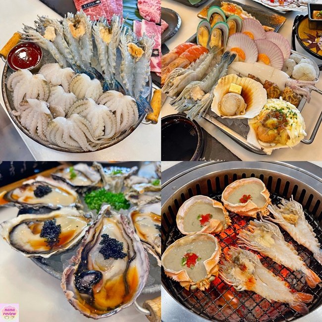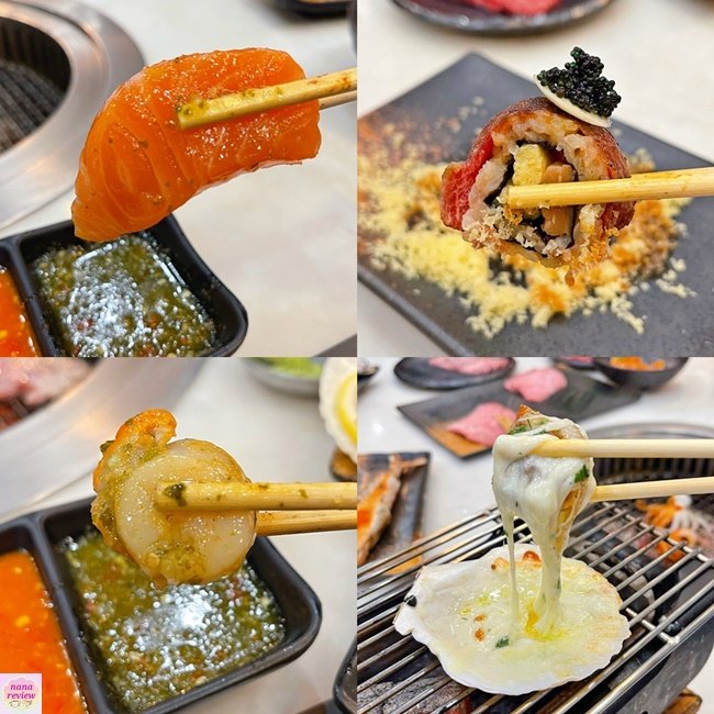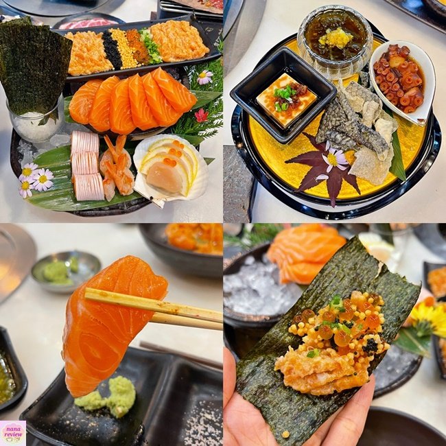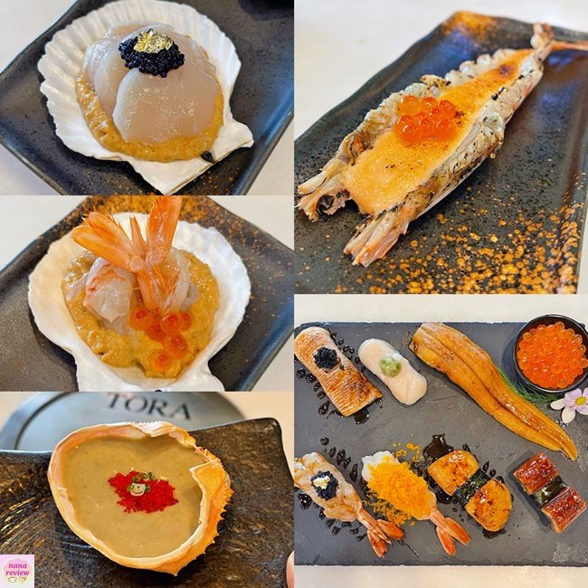 มันปูย่าง, หอยเชลล์โฮตาเตะหลายเมนู , กุ้งหวาน , แซลมอนซาชิมิ ,แซลมอนสไปซี่ และ โทระไคเซกิเซ็ต