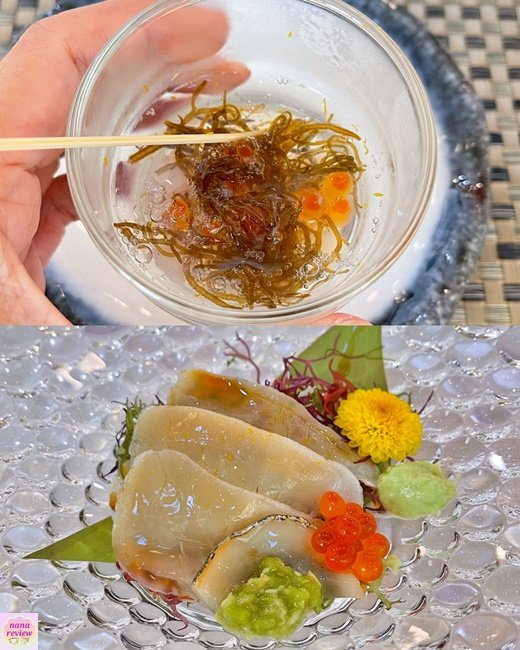เป็นหอยเชลล์ในซอสเปรี้ยว และ หอยกาบซาชิมิค่ะ