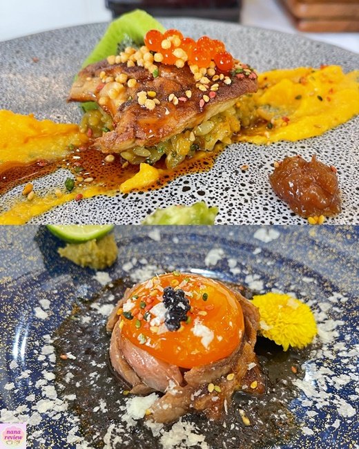 ตามมาด้วย Foie Gras และ ข้าวหน้าเนื้อย่างท้อปด้วยไข่ดอง