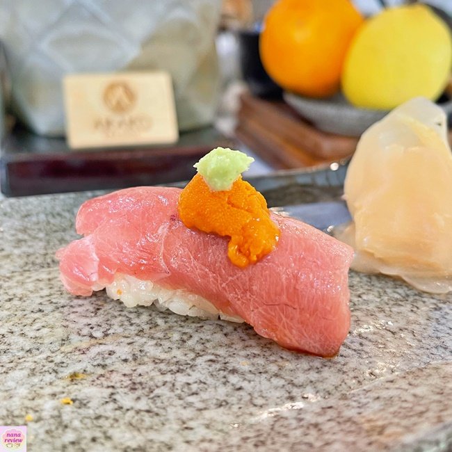 ต่อด้วย 3 คำล้ำค่า ซูชิทูน่า เริ่มจาก Akami , Chutoro ท้อปด้วย Uni และ Otoro ที่ท็อปด้วย Black Truffle ค่ะ