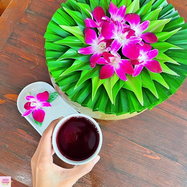 เสร็จแล้วก็มารับน้ำดื่มสมุนไพรร้อน ปิดท้ายค่ะ