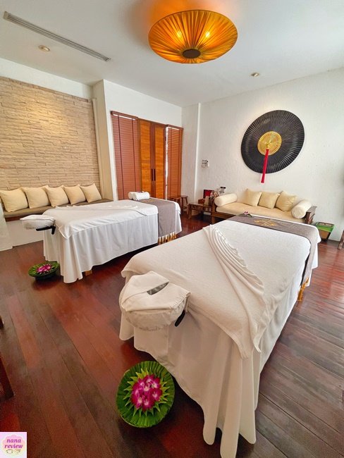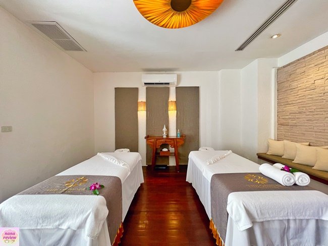 ไปดูห้องสปาก่อนเลย เป็นห้องเตียงคู่ กว้างขวาง แอร์เย็นฉ่ำ