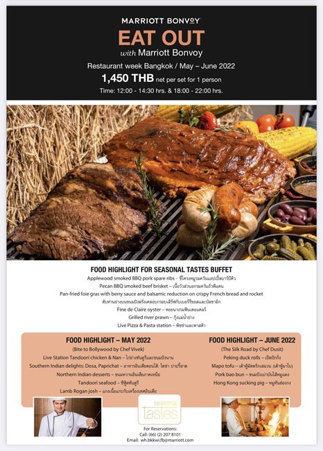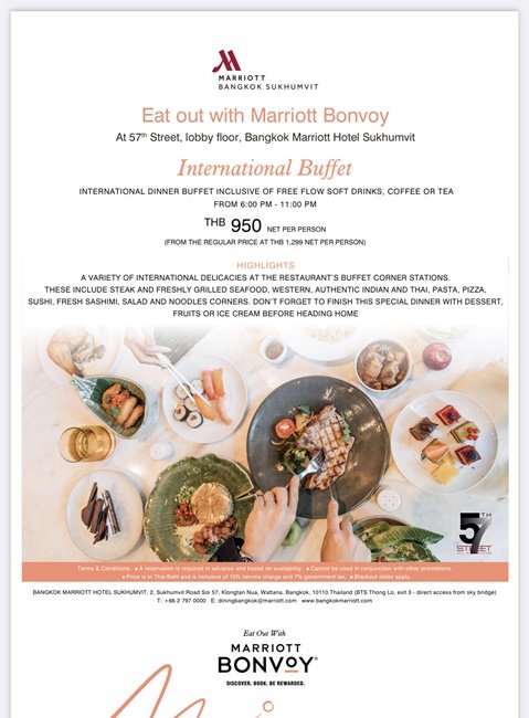 โปรแกรม “Eat Out กับแมริออท บอนวอย” / Eat Out with Marriott Bonvoy ให้บริการเฉพาะสมาชิกของแมริออท บอนวอย