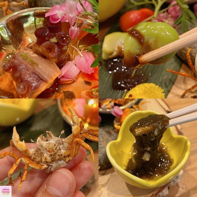 มีปลาหมึกหวาน, สาหร่ายในซอสเปรี้ยว และถั่วค่ะ