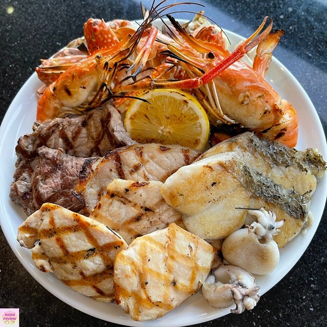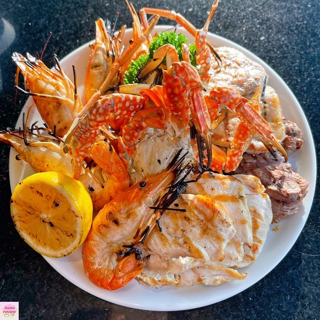 สเตชั่นกริลล์ สั่งได้ไม่อั้น , กุ้งแม่น้ำเผา , ปูม้าเผา , สเต็กเนื้อ , สเต็กหมู , สเต็กปลา