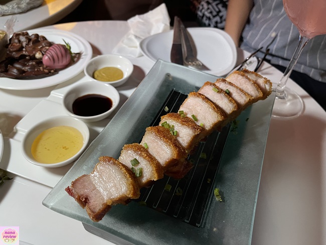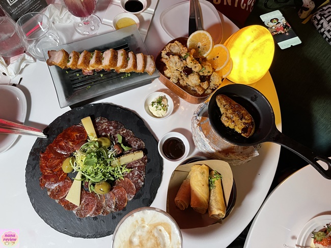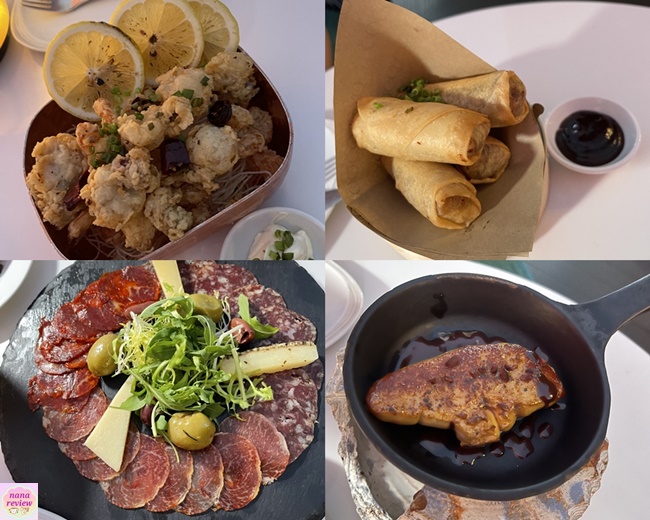 นำวัตถุดิบพรีเมียมมาเป็นส่วนประกอบ อาทิ เนื้อวัวญี่ปุ่น, ล็อบสเตอร์, ฟัวกราส์ หอยนางรม เป็นต้น และบางเมนูยังได้นำโกโก้มาเป็นส่วนผสมด้วย เช่น Crackling Pork Belly หมูกรอบที่พิถีพิถันในการปรุงจนนอกนุ่มในพร้อมน้ำจิ้ม 3 สไตล์ มีซอสโชยุ น้ำจิ้มบ๊วย และมาสตาร์ด หรือจะเป็น Snow Fish Rolls โรลไส้ปลาหิมะทอดกรอบ ยังมี Sweet Potato Fries มันฝรั่งทอดจิ้มซอส 2 แบบ หรือถ้าชอบเนื้อย่าง Hitachi wagyu Beef Skewer ก็นุ่มละมุนลิ้นไม่เบา เป็นต้น เติมเต็มบรรยากาศปาร์ตี้ให้อารมณ์สุนทรีย์ในช่วงหัวค่ำด้วยเสียงเพลงบีทเบาๆ จากดีเจ