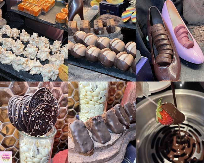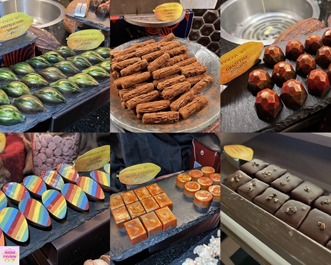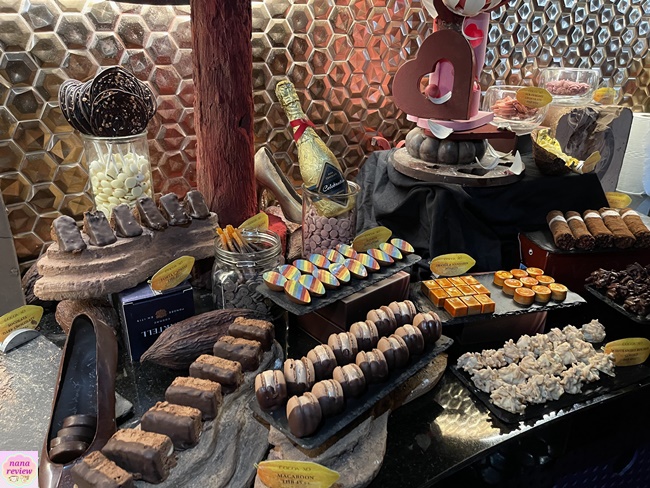 ด้านในถ้ำรวบรวมเหล่าบรรดาช็อกโกแลตพรีเมียมมากมายกว่า 49 ชนิด ไอศกรีมซอฟท์เสิร์ฟรวมถึง ช็อกโกแลตเอนจิ้น ที่รอให้เหล่าสายหวานมาร่วมพิสูจน์ลิ้มลองเพลิดเพลินความอร่อยแบบจุใจ สำหรับบุฟเฟ่ต์ช็อกโกแลตไม่อั้นราคาเพียง 812 บาทถ้วนต่อท่าน อาทิ ช็อกโกแลตคอนยัค ดาร์คช็อกโกแลต ไวท์ช็อกโกแลต นามะช็อกโกแลต ไอศกรีมซอฟท์เสิร์ฟ สตรอว์เบอร์รี่เคลือบช็อกโกแลต มาการอง ฟองดูช็อกโกแลต เค้กช็อกโกแลตกานาซ ช็อกโกแลตซิการ์คอนยัค คอนยัคทรัฟเฟิล ช็อกโกแลตฮันนี่เลมอน ช็อกโกแลตนูกัส บิ๊กบาร์ช็อกโกแลต ช็อกโกแลตเวเฟอร์ ช็อกโกแลตเฮเซลนัท ช็อกโกแลตฮันนี่กาน่า และเมนูอื่นๆอีกมากมาย