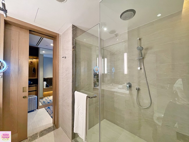 ห้องน้ำแบ่งเป็นห้องอาบน้ำพร้อม Rain Shower ของใช้ต่างๆครบ