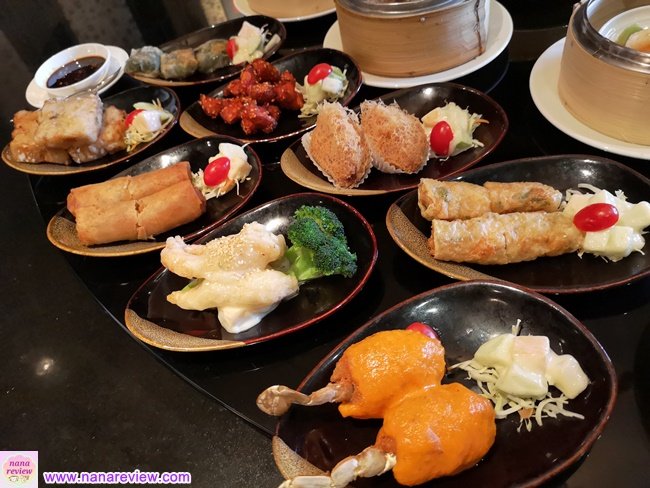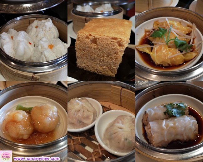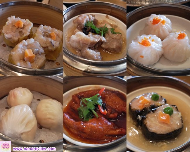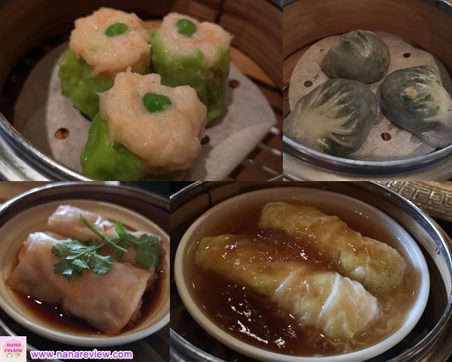 ขนมจีบกุ้งหยก , ฮะเก๋าหอยเชลล์, ซี่โครงหมูนึ่งเต้าซี่ , สาหร่ายห่อกุ้งนึ่ง , ก๋วยเตี๋ยวหลอดไส้หมูแดง , เกี๊ยวกุ้งนึ่ง , ซาลาเปาต่างๆ