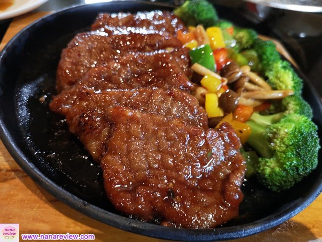 เนื้อสันผัดพริกไทยดำกระทะร้อน อันนี้เนื้อนุ่ม ซอสรสกลมกล่อม กินได้ทั้งบ้านเช่นกัน