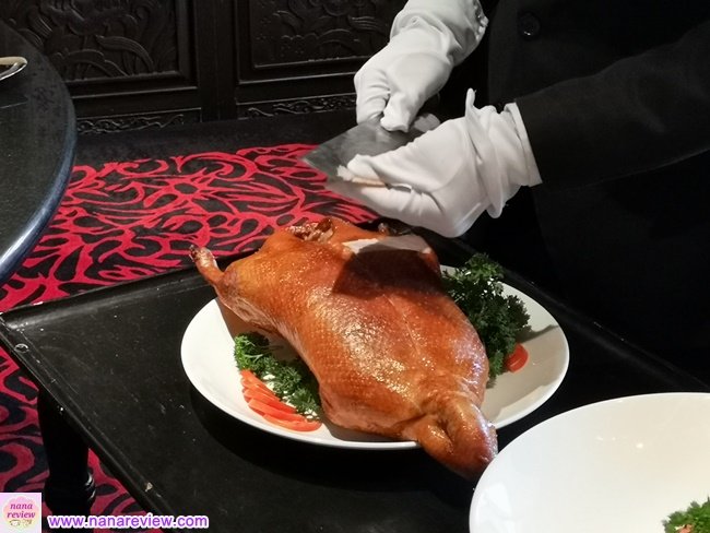 เป็ดปักกิ่ง ตัวละ 1,450 บาท คุณภาพเน้นๆ มีบริการแล่หนังให้ที่โต๊ะ หนังเป็ดบางกรอบ กินกับแป้งและซอสแสนอร่อย เนื้อเป็ดนำไปปรุงเป็นเมี่ยงกินกับผัก อร่อยมากมาย แนะนำว่ามาเป็นครอบครัวสั่งเลยจ้า