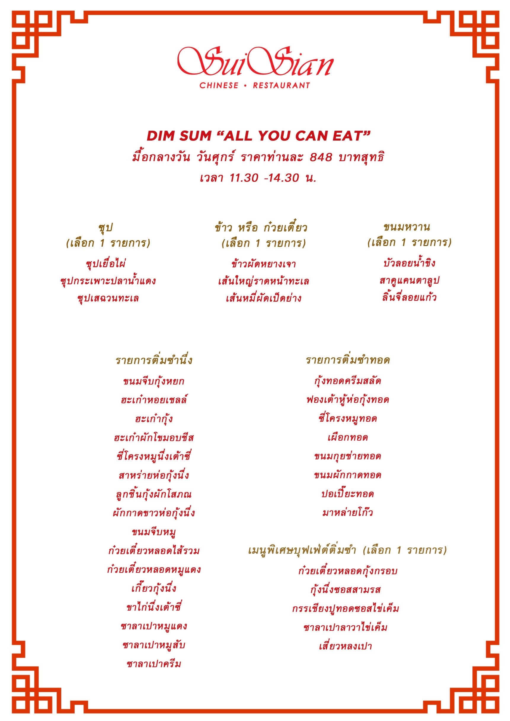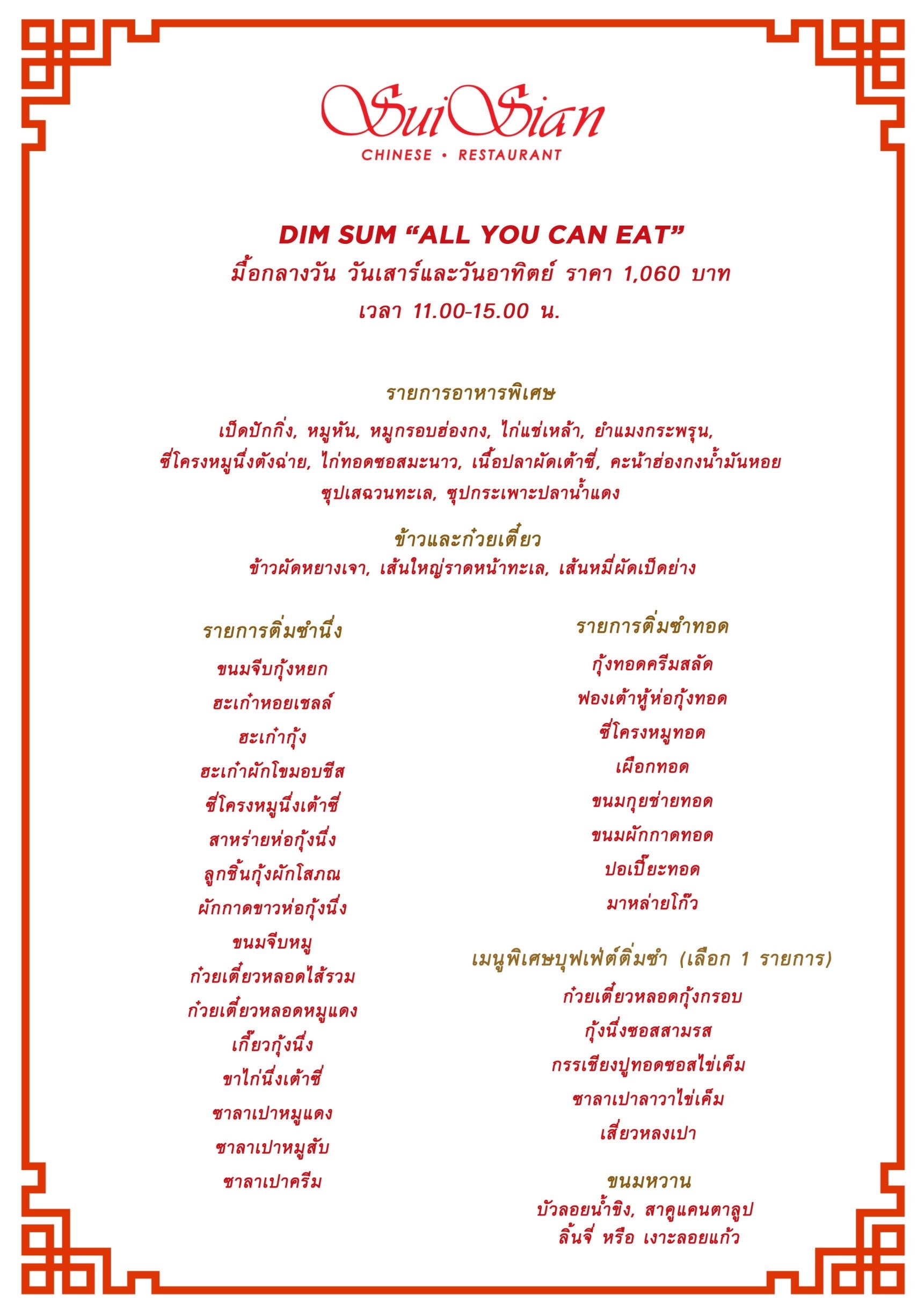 มื้อกลางวัน บุฟเฟ่ต์ติ่มซำ วันเสาร์ - วันอาทิตย์ เวลา 11.00 - 15.00 น.